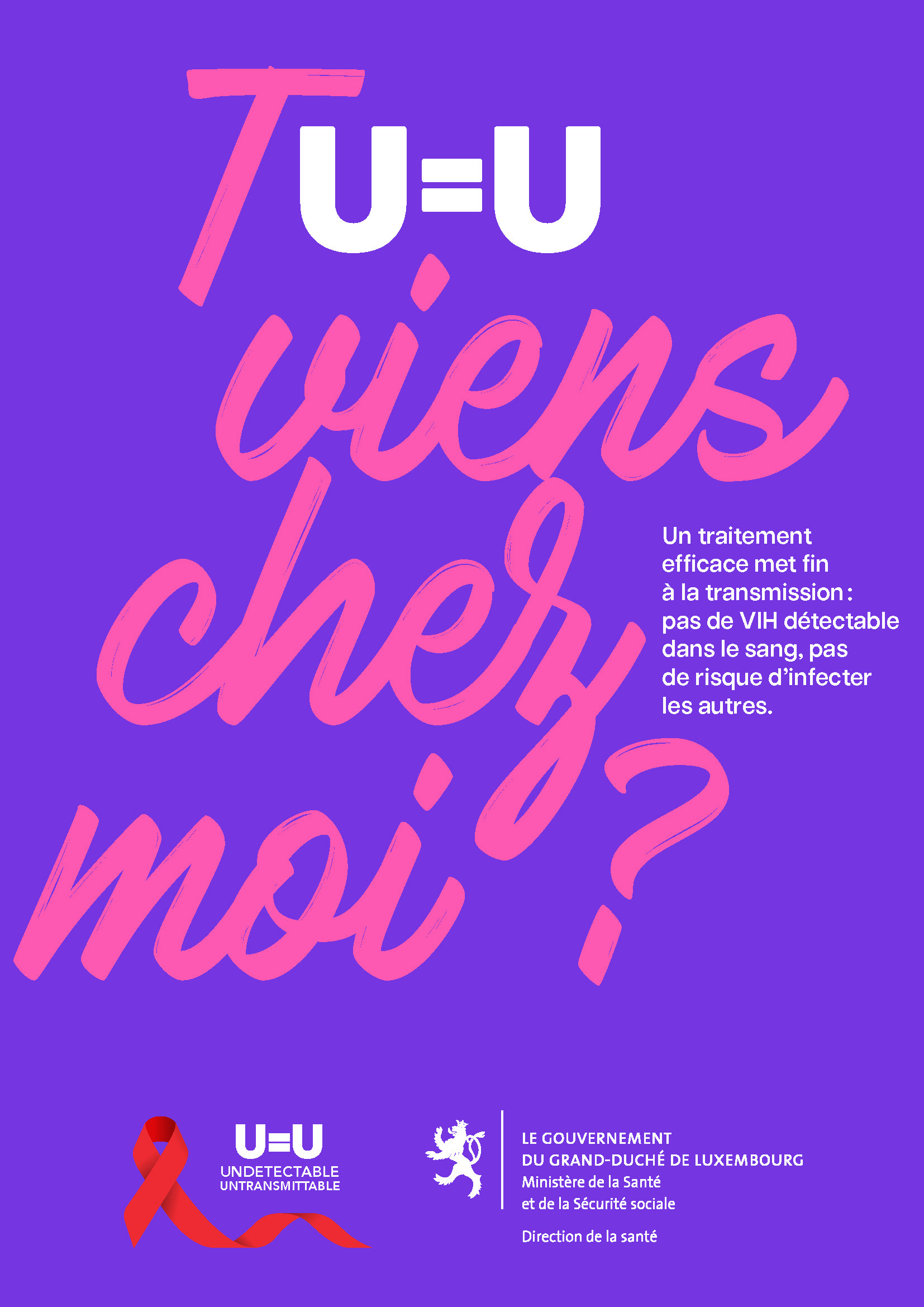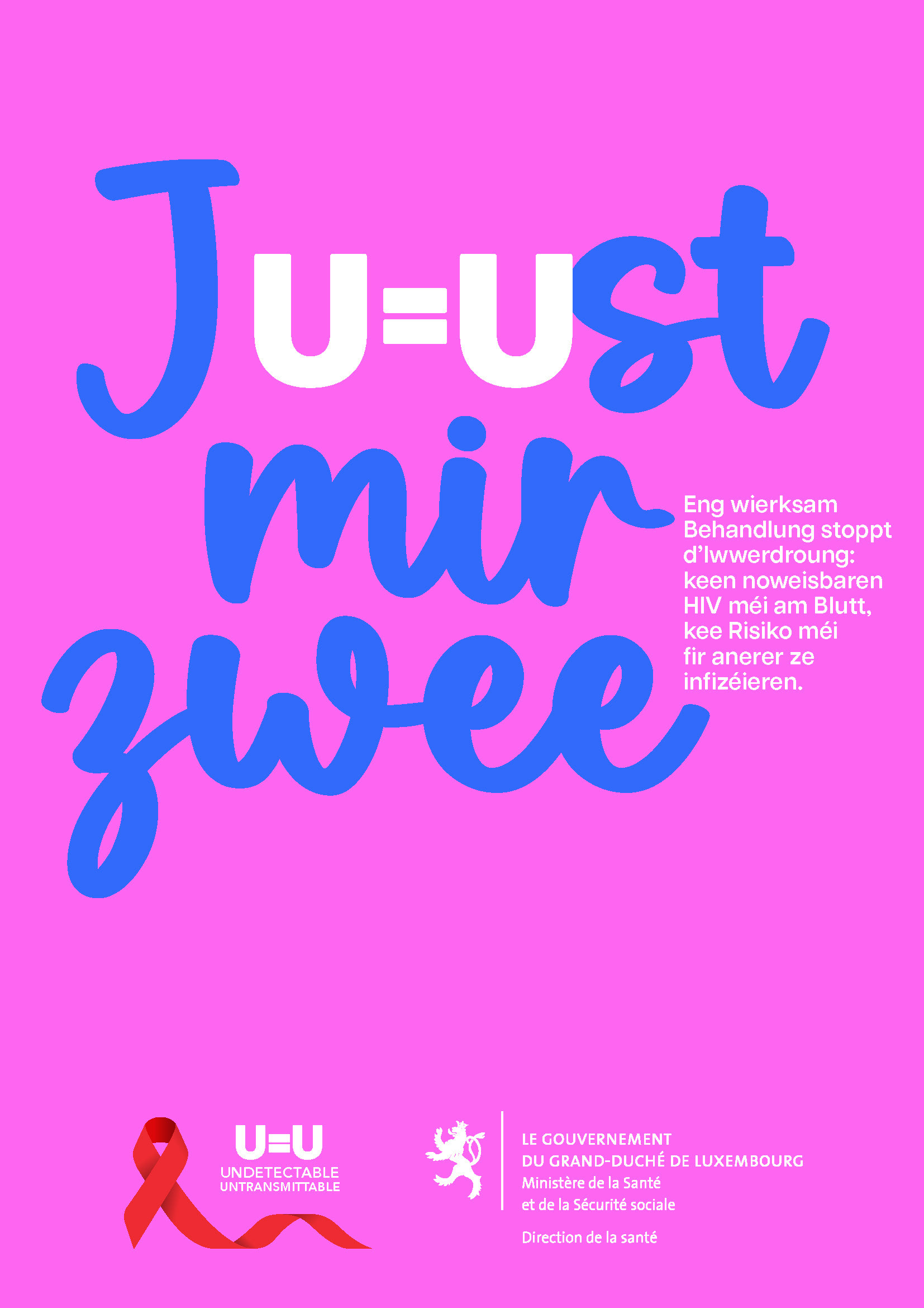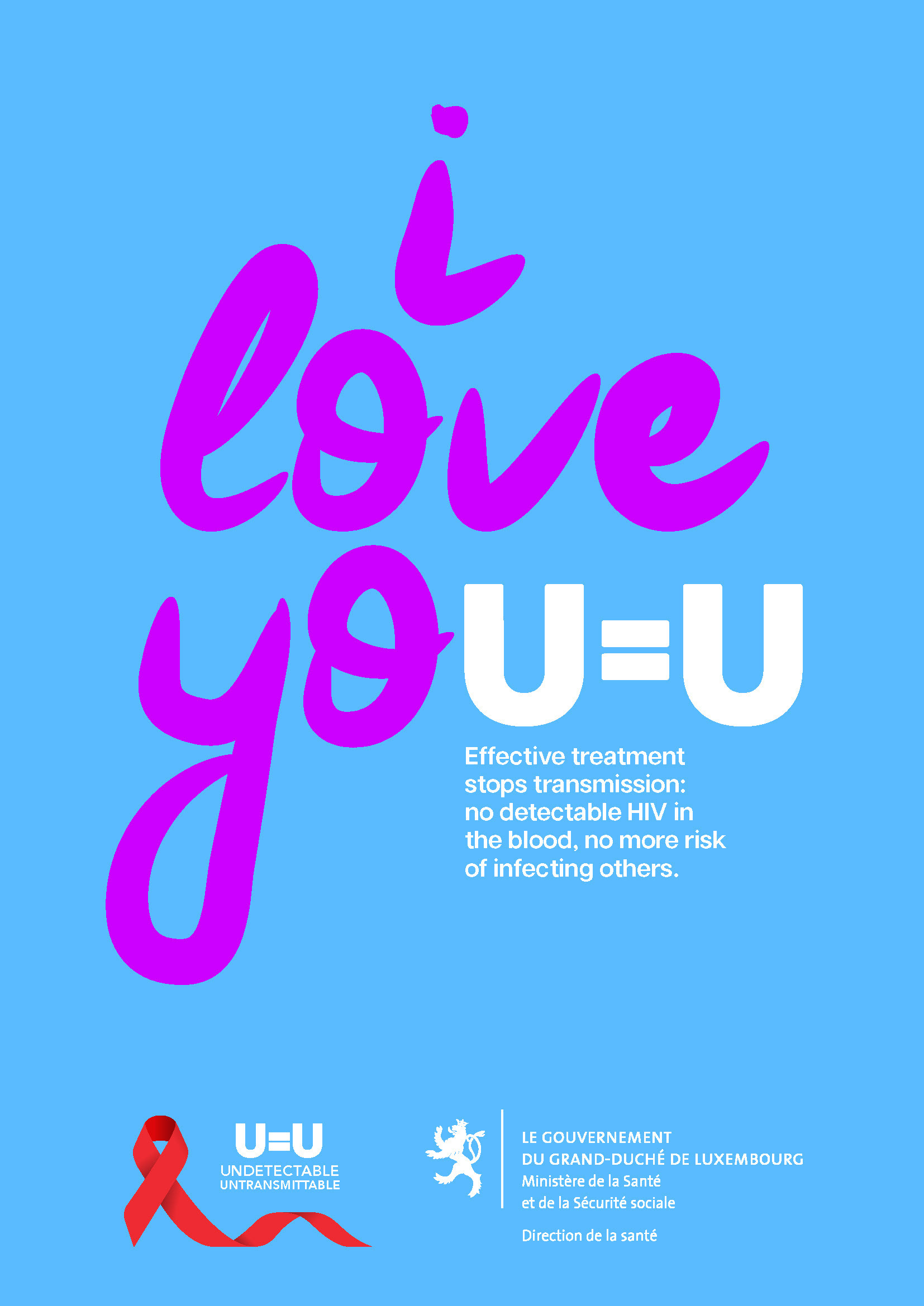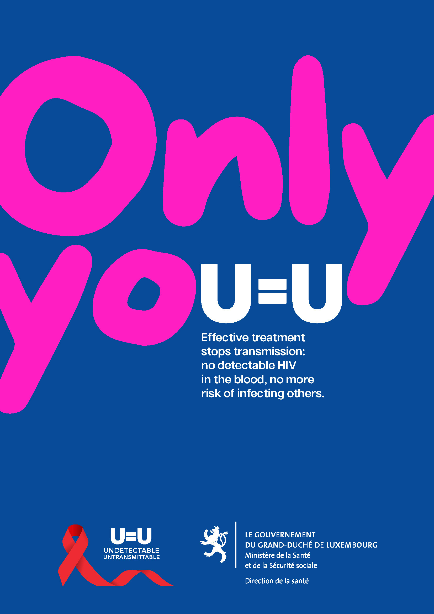 Le Ministère de la Santé Luxembourgeois a voulu faire une campagne afin de mettre en avant le message U=U (Undetectable = Untransmittable), une vérité encore trop méconnue. Grâce aux traitements anti-VIH, une personne vivant avec le virus et dont la charge virale est indétectable ne peut en effet plus le transmettre.