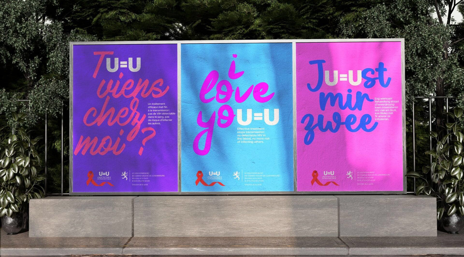 A travers une campagne typo en Français, Anglais et Luxembourgeois qui redonne à l’amour tout son sens, le U=U aura été véhiculé par des messages puissants, positifs et colorés. Des expressions de désir qui deviennent des déclarations d’amour. Et qui permettent d’aimer sans peur, sans barrière, sans tabou.